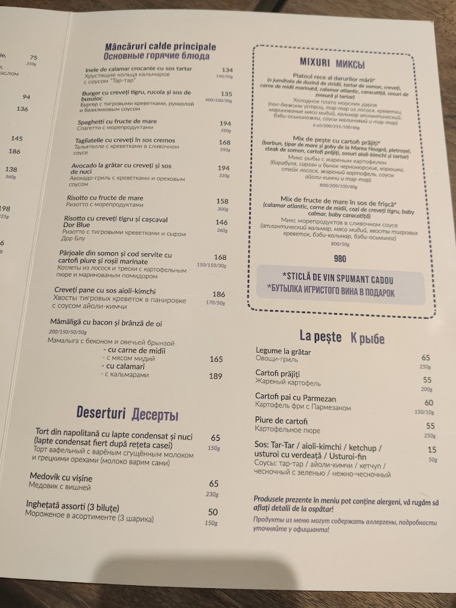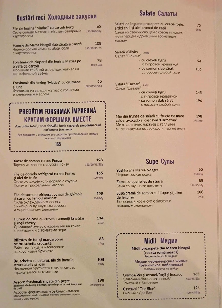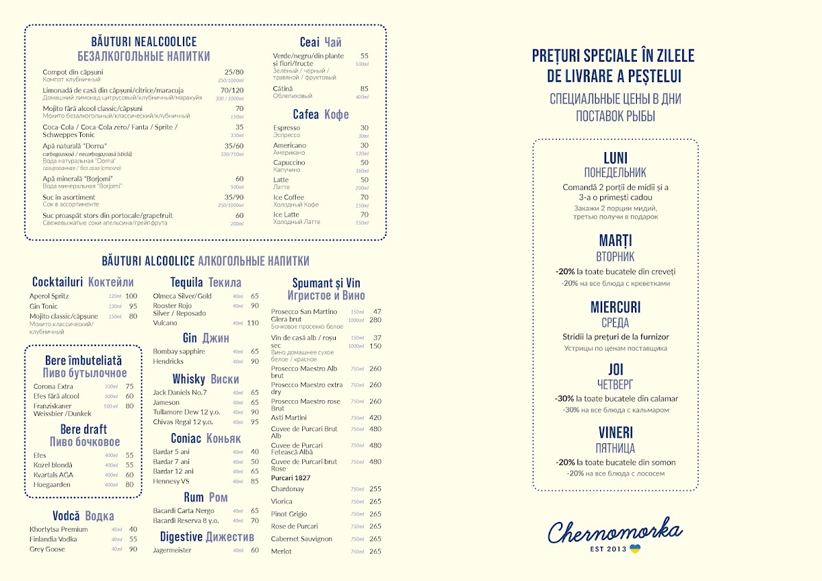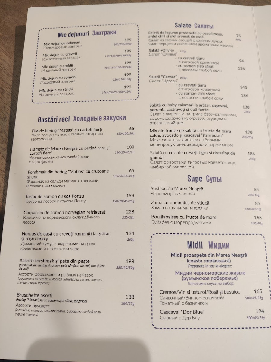 Welcome to Chernomorka, a hidden gem nestled in the heart of Chişinău, where the enchanting flavors of the Black Sea come alive. The menu is a carefully curated collection of seafood delights that promises to satisfy the palates of even the most discerning food lovers.